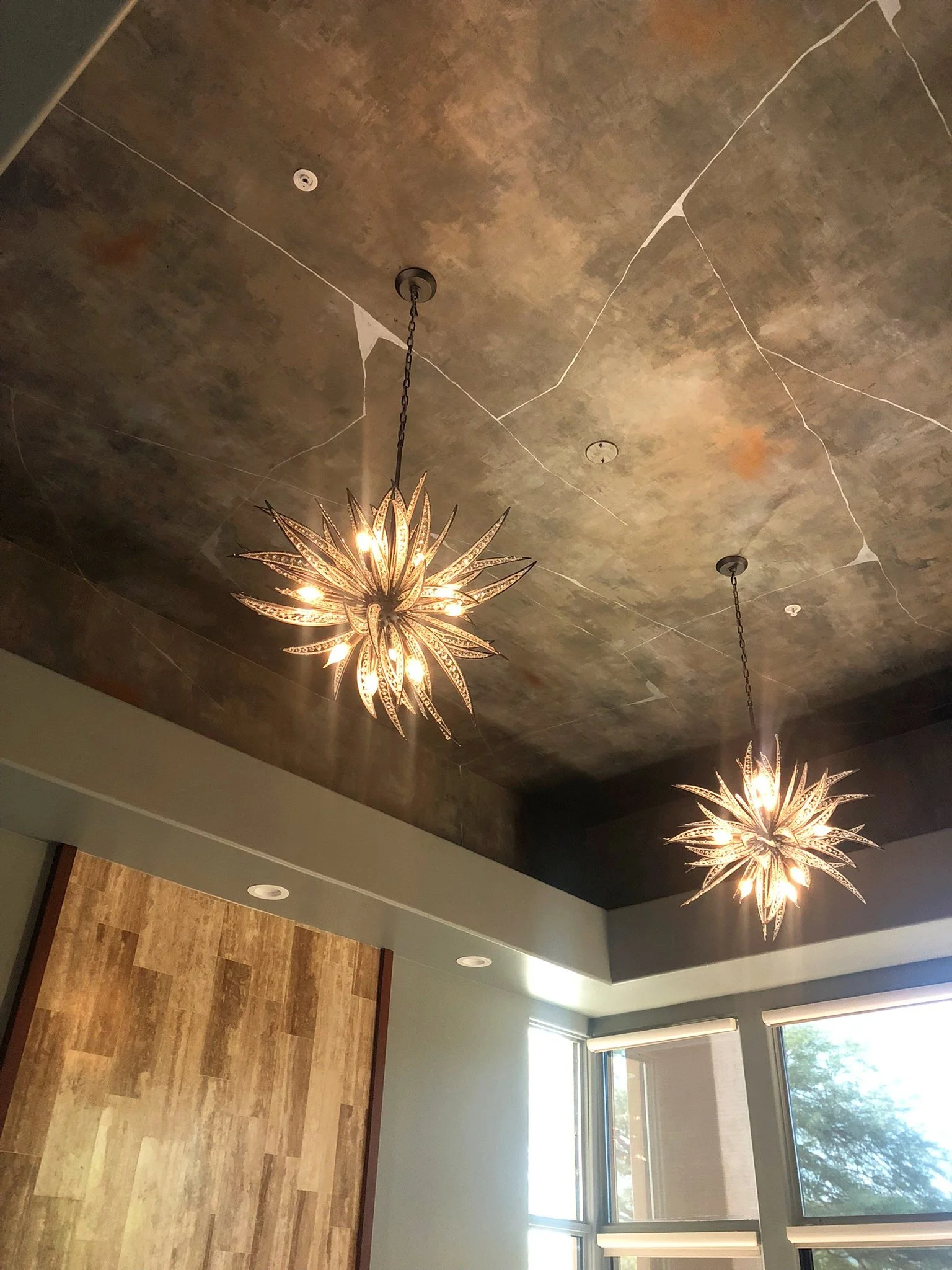 A recent project had them collaborating with designers Jen Lossing ASID of Artistic Abode Designs and Amanda Billings of Artifacts Interiors. They wanted the ceiling to be a major focal point upon entering the client's home. "We embrace challenges that allow us to keep growing as artists, and collaborating with talented creative interior designers gives us that opportunity on a daily basis. Our motto is to say “yes” and figure it out later when we are presented with the sometimes “impossible”, Anna further shares.