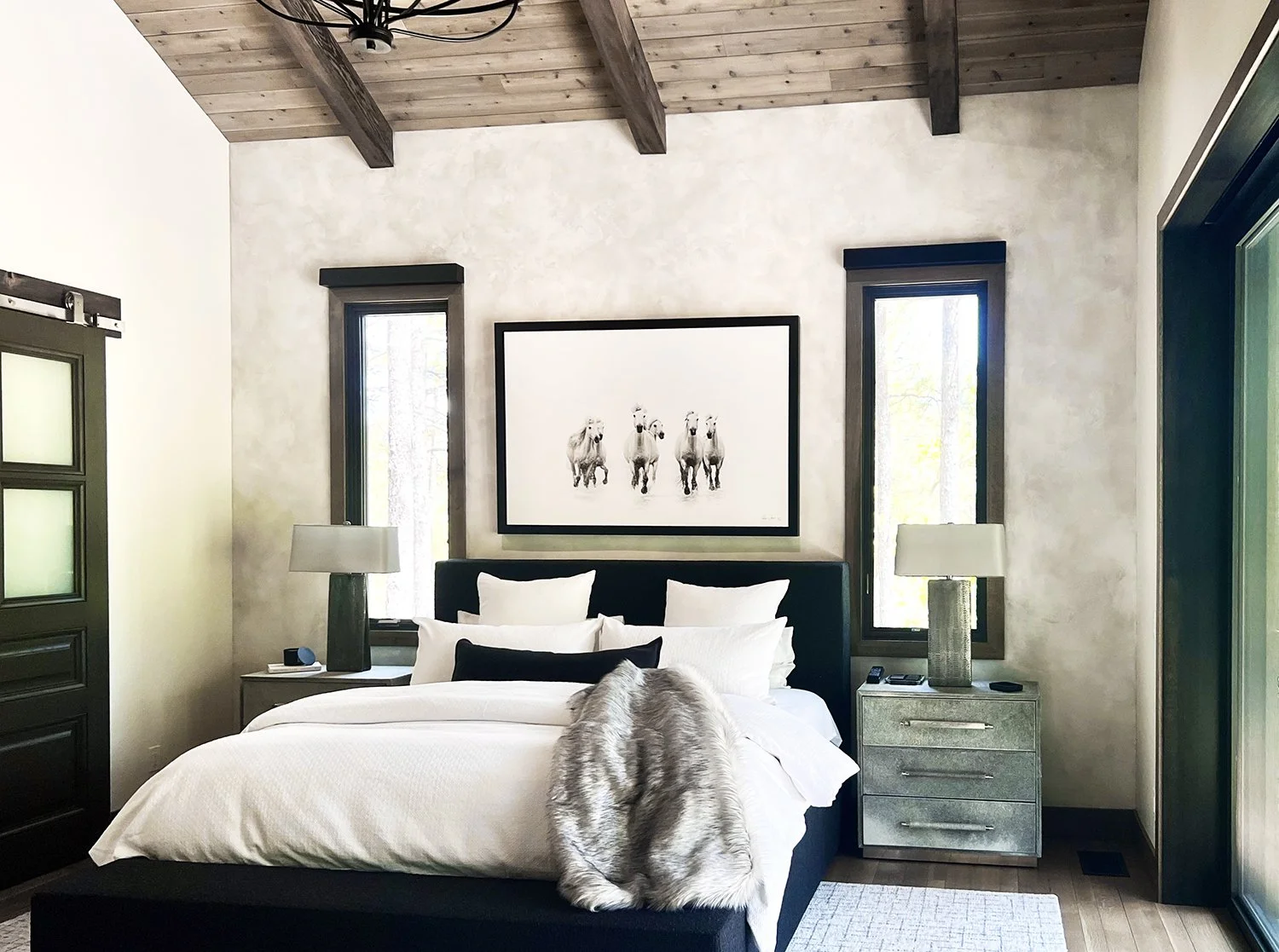 Marmorino KS creates a creamy, dreamy focal wall in a modern farmhouse bedroom.